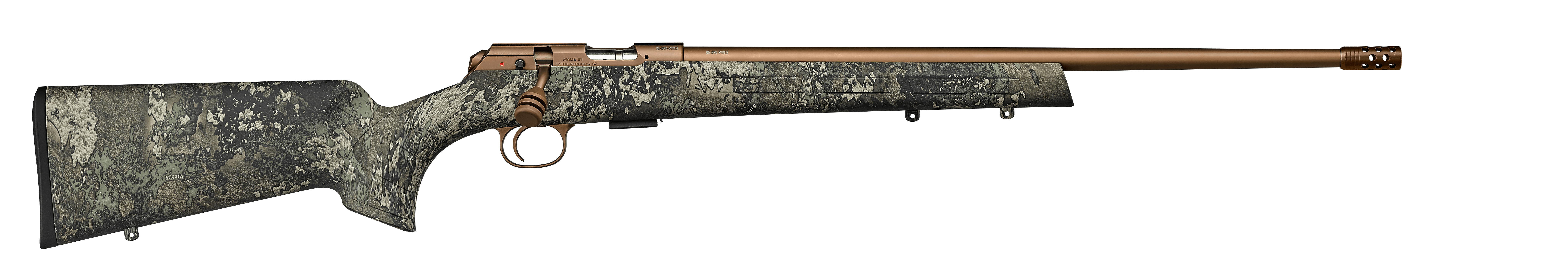 User-swappable barrels and calibersThe new CZ 457 HUNTER STRATA is a new model in the CZ 457 rimfire rifle line. Featuring a highly effective camouflage pattern on its soft-touch polymer stock, you can count on a hidden presence in hand that is extreme durable and resistant to adverse weather conditions.