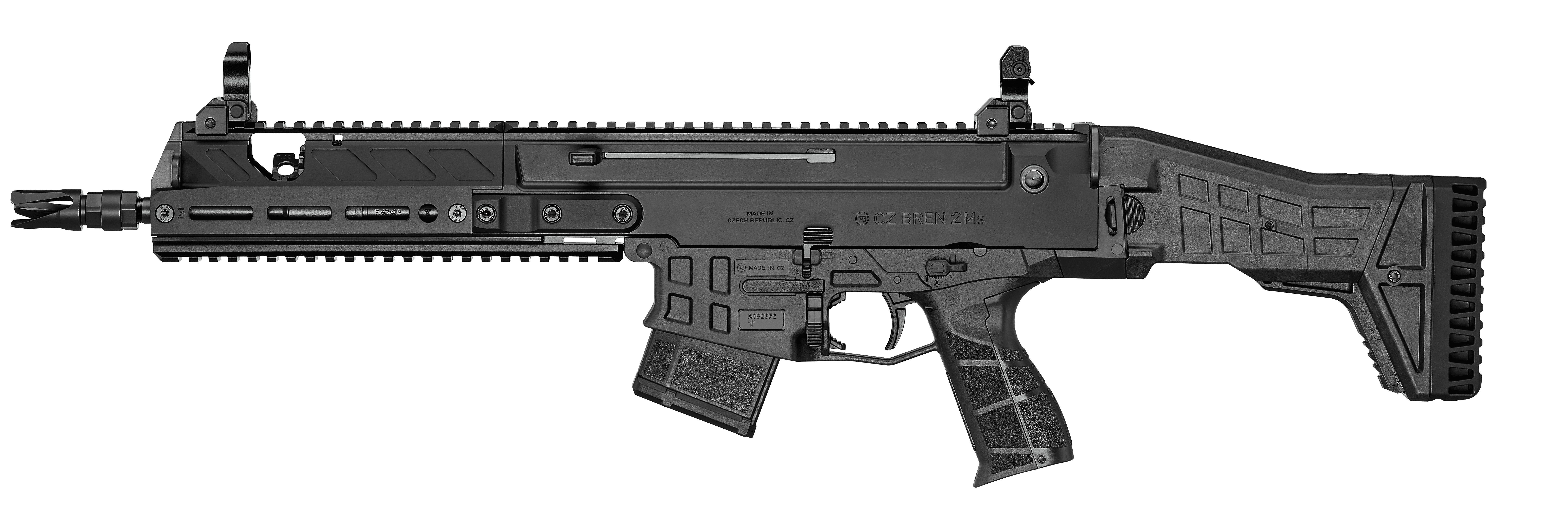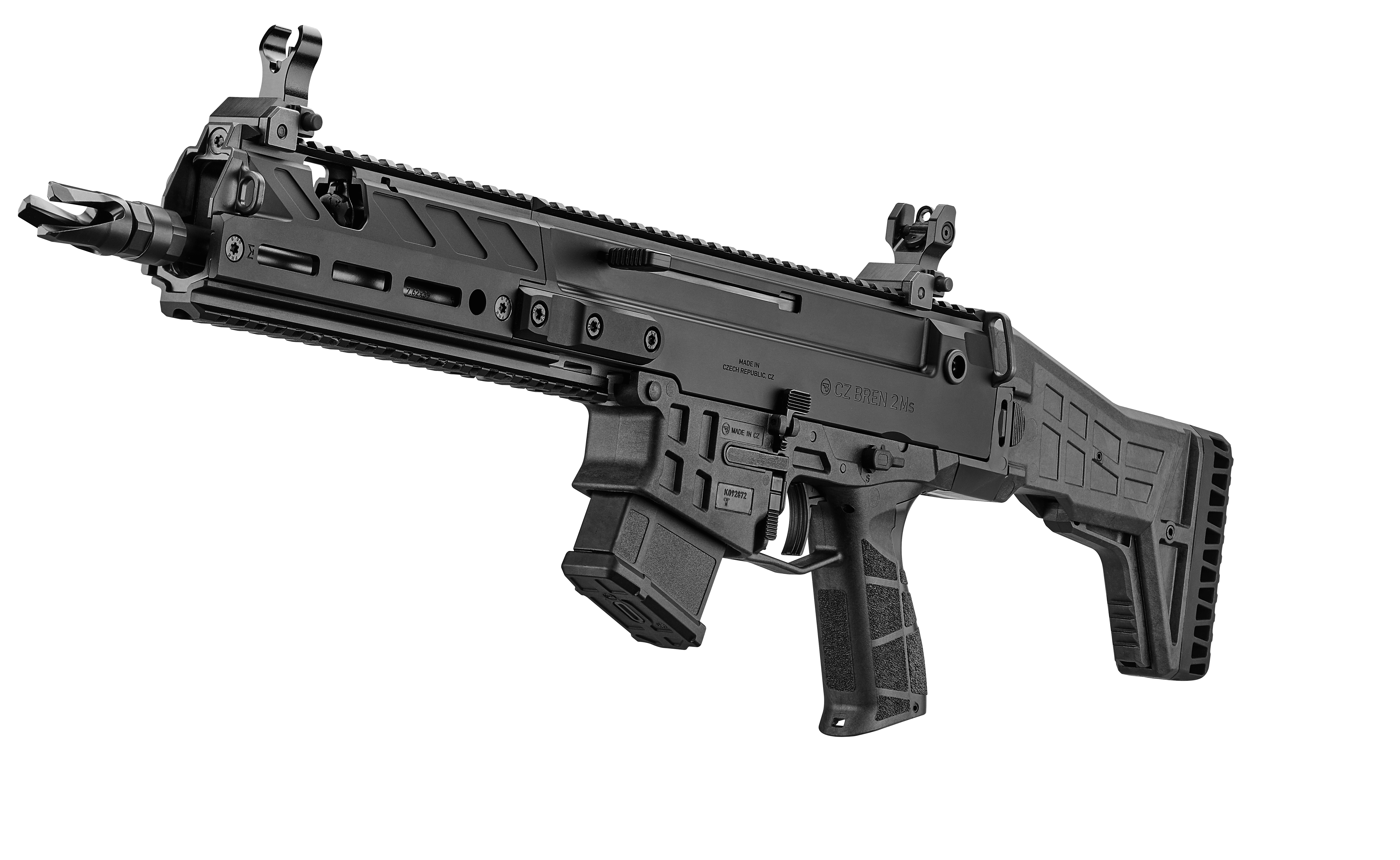 Receiver made from lightweight 7075 aircraft-grade aluminum alloyThis model combines the outstanding design and features of the CZ BREN 2 Ms series with the impressive ballistic performance of the 7,62 × 39 cartridge. Standard equipment includes mechanical sights.